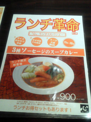 ランチ限定の「3種ソーセージのスープカレー」
