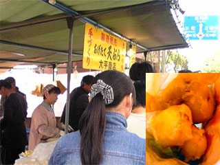 途中、ゆず入り大判焼きやら干物やら買いながら、