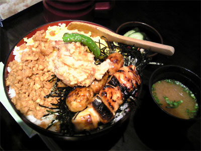 そぼろ丼に焼き鳥(ねぎまとつくね)に、