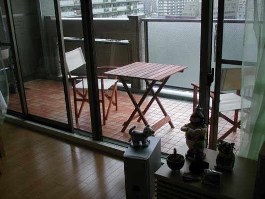 置きました。十分広いです。テーブルセットが貧相に