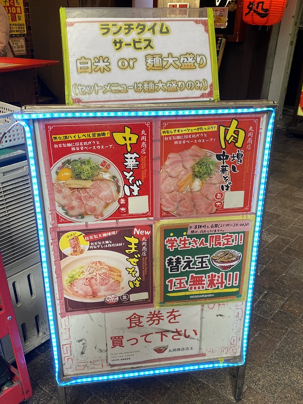 お昼は麺大盛かご飯が無料