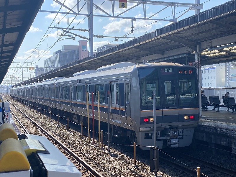 前照灯付きっぱなしの普通四条畷行に見送られ出発!