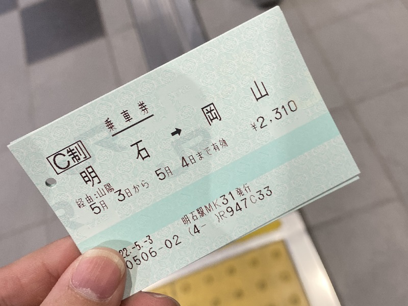 ※乗車券は岡山で降りず明石まで買った方が700円くらい安いことに気付かず。。。。