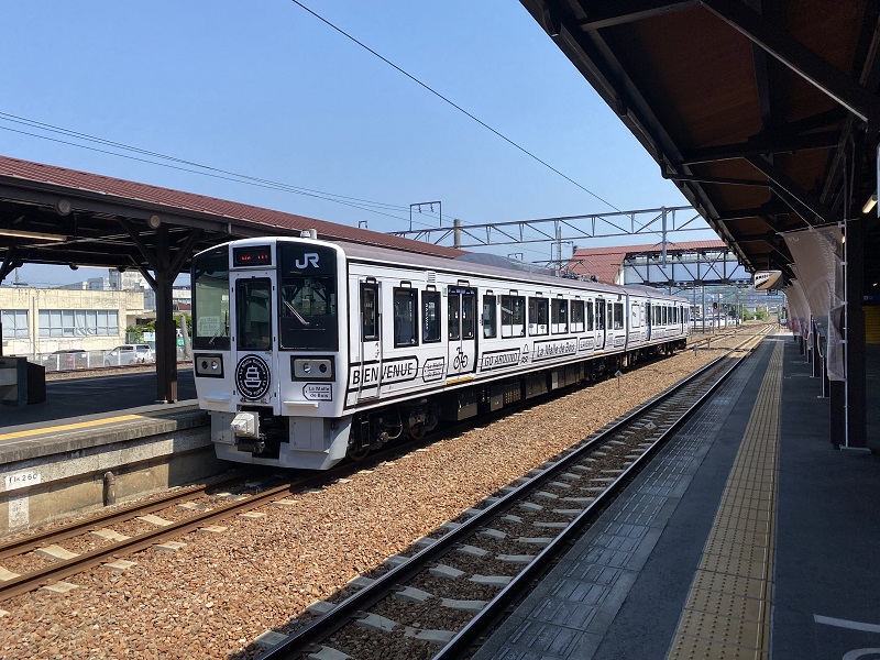 琴平では自転車乗れる観光列車がお出迎え