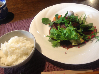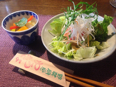地元野菜のサラダにピクルス。