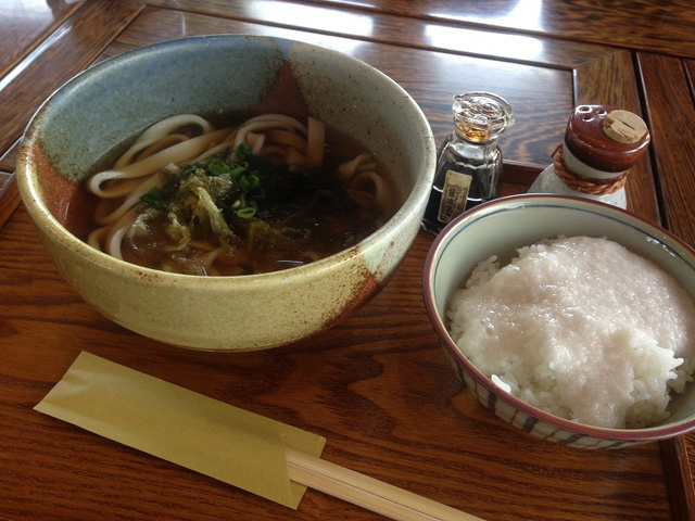 おぼろ昆布うどんと、とろろご飯。
