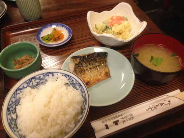 塩焼き鯖とポテトサラダ、小鉢がついて