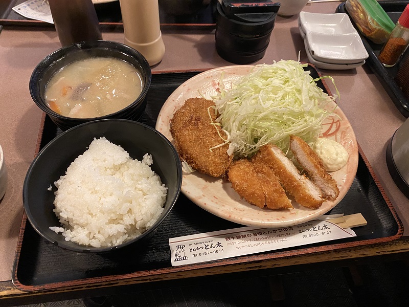 けっこうなボリューム! とんかつとチキンカツ 豚汁!