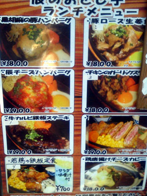 メニュー。いろいろあって悩む…。